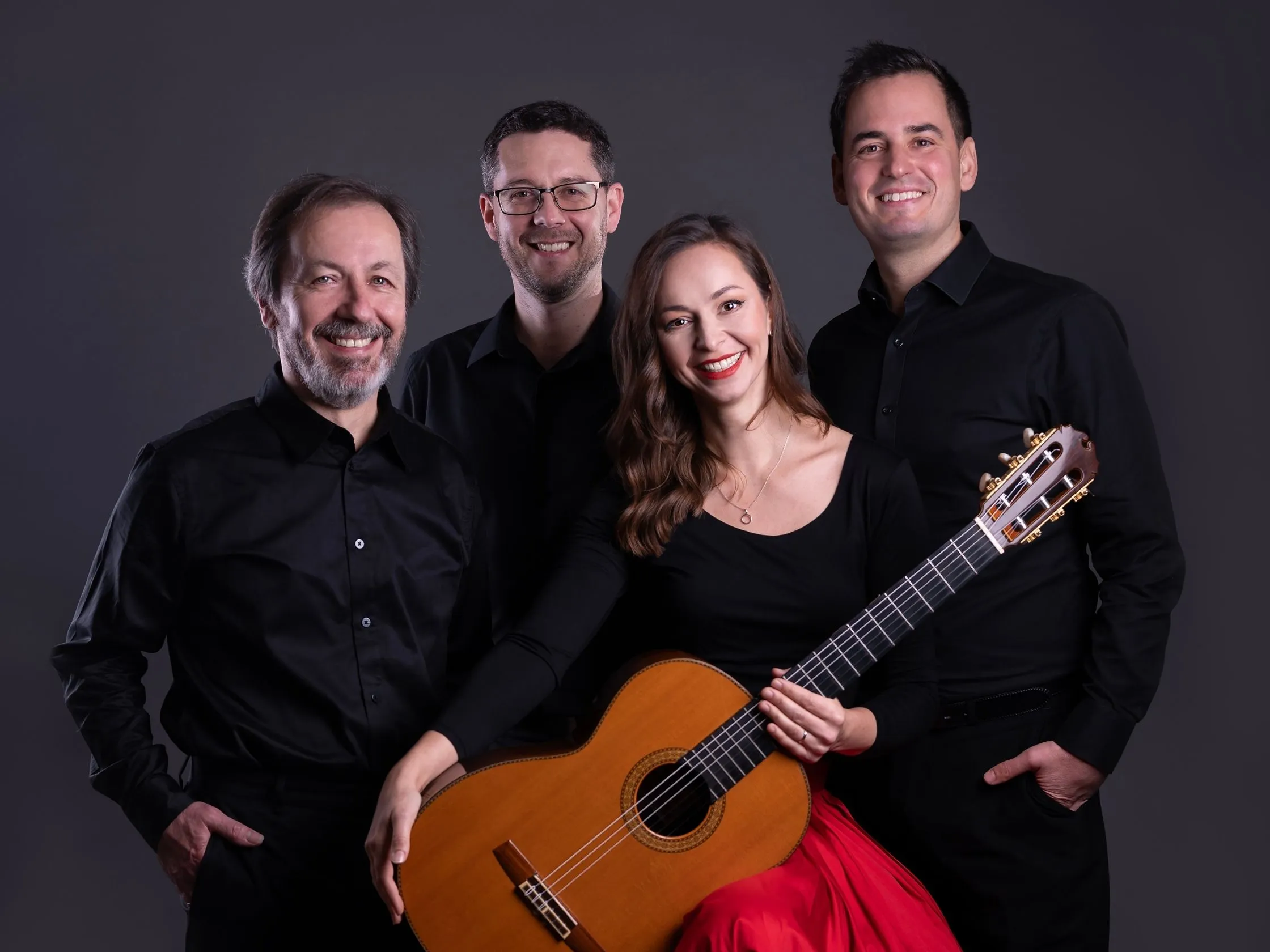 Možná se to bude zdát k neuvěření, ale Pražské kytarové kvarteto letos slaví 40. sezónu od svého založení. Od svého vzniku v roce 1984 soubor postupně získal velké mezinárodní renomé. Kvarteto je oceňované zejména pro dokonalou souhru a mimořádné interpretační mistrovství. Ruce všech čtyř kytaristů jako kdyby postrádaly zemskou tíhu. Nekompromisní čistota hry povyšuje jejich hudbu na výjimečný zážitek koncertních sezón i světových festivalů. Letos ozdobí lesk čtyřiadvaceti zvučných strun i naši sezónu komorních koncertů v Anežském klášteře.